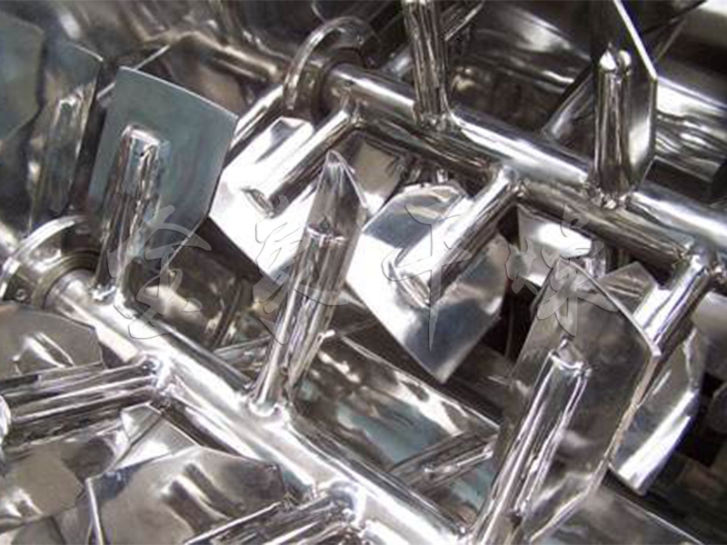 無重力混合機采用臥式W型筒體,內設兩組反向旋轉的平行軸,兩軸上裝有相反角度的漿葉(稱雙臥軸),運行時帶動物料達到拋物線的高點使物料瞬間失重,稱之為無重力點,在該點不同粒徑、不同密度的物料實現均勻混合,亦稱無重力雙軸漿葉混合機,兩側的物料即反向運動,物料相互落入對面區域內,中央部位形成對流,從而確保物料徑向、環向、軸向三向拋灑運動,形成復合循環,迅速達到均勻混合,設計混合時間1~3分鐘,混合后由底部出料。