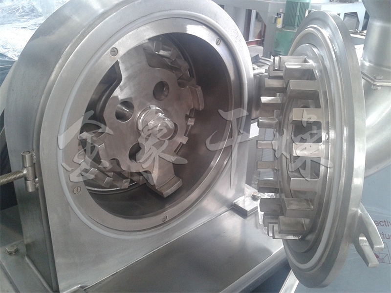 本機的工作原理是物料進入粉碎室,在高速旋轉的活動齒盤與固定齒盤間受齒的沖擊、剪切、磨擦及物料間的相互撞擊的作用下被粉碎,經篩網篩選后即成為所需的粉料。