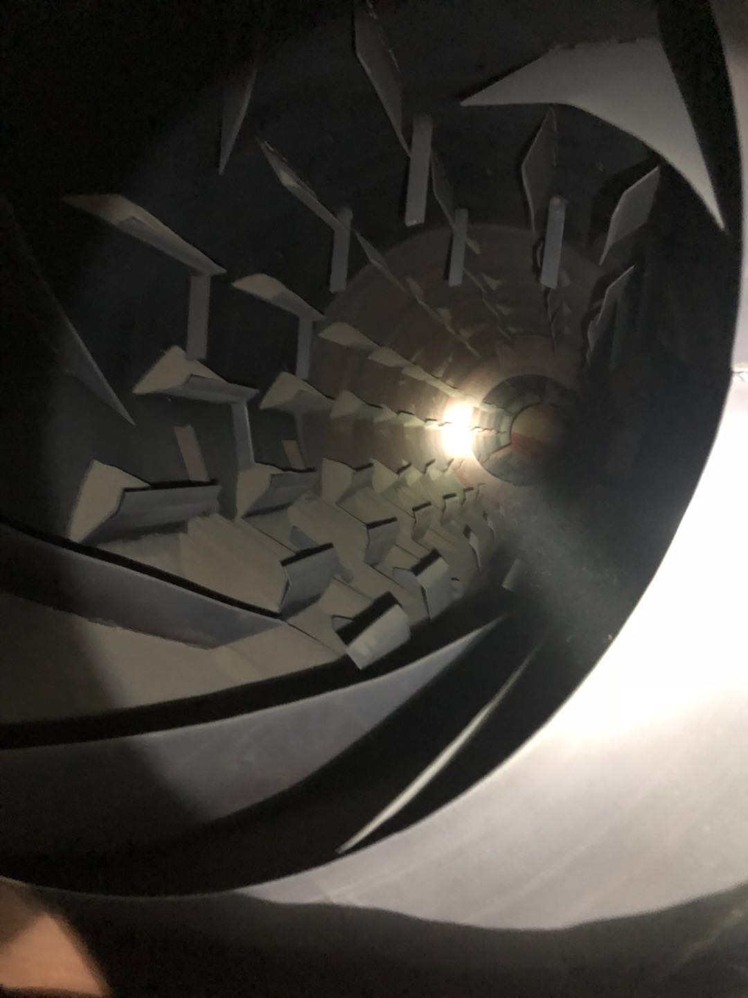 濕物料從干燥機一端投入后,在內筒均布的抄板器翻動下,物料在干燥器內均勻分布與分散,且與并流( 逆流 )的熱空氣充分接觸 ,加快了干燥傳流、傳質推動力。在干燥過程中,物料在帶有傾斜的抄板和熱氣流作用下,可調控地運動至干燥機另一端星形卸料閥排出成品。